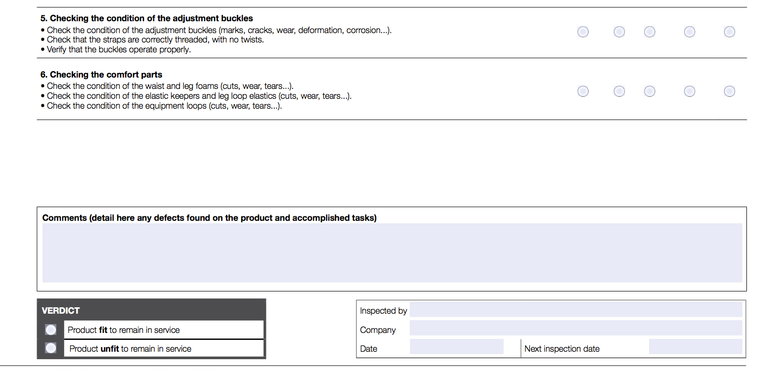 Workplace safety or whs inspection checklists are tools used by employers and/or safety managers to complete safety checks within your place of work. Free download a safety harness. Bend all web surfaces, a section at a time, and look for damage. Blank inspection checklist form template construction site. There are three main types of safety harness inspection that you need to carry out.